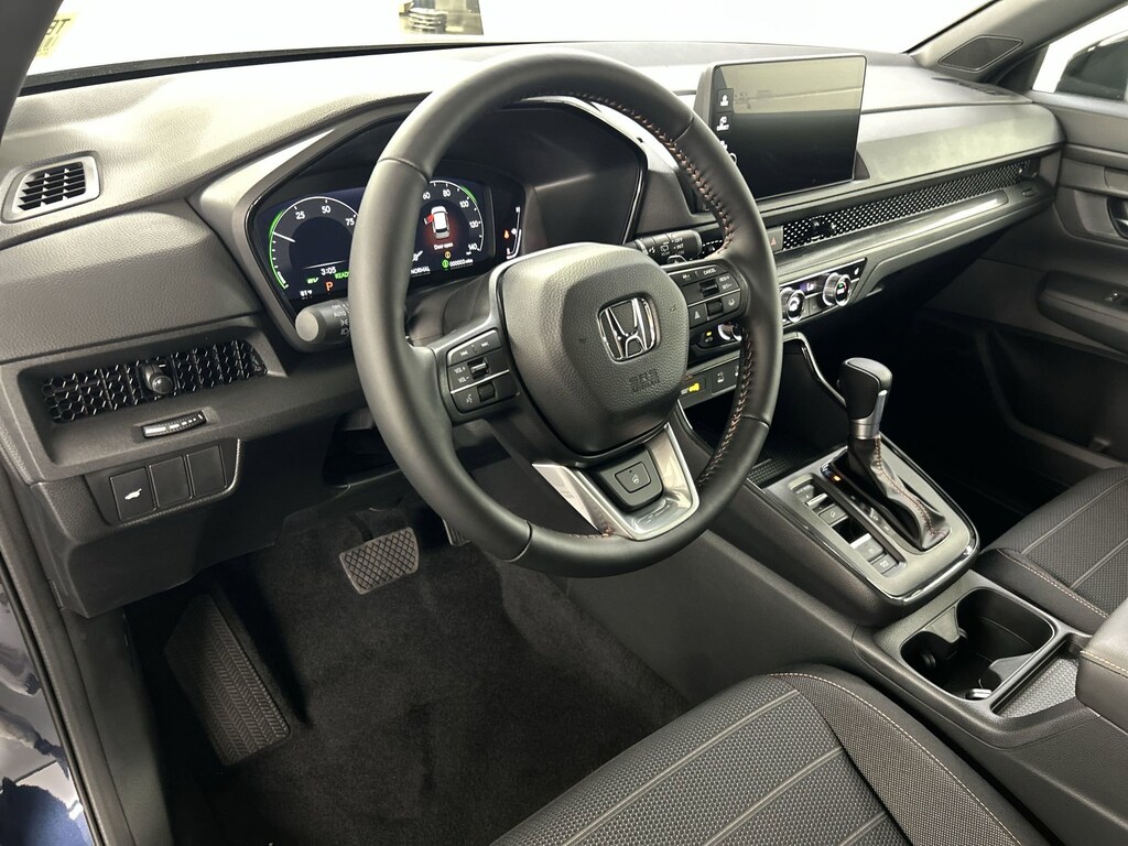 Wheels: 18" Shark Gray, Vehicle Stability Assist (VSA) Electronic Stability Control (ESC), Valet Function, Trip Computer, Transmission: Electronic Continuously Variable -inc: sport, normal, econ and snow dynamic drive modes, Traffic Jam Assist, Tires: 235/60R18 107V All-Terrain, Tire mobility kit, Tailgate/Rear Door Lock Included w/Power Door Locks, Strut Front Suspension w/Coil Springs. This Honda CR-V Hybrid has a dependable Gas/Electric I-4 2.0 L/122 engine powering this Variable transmission.