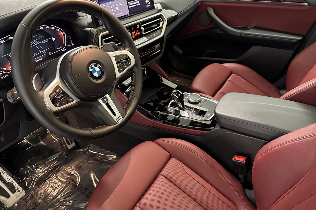 This 2024 BMW X4 M40i is a One Owner vehicle with a Clean Carfax, exterior, and interior. Key features include M SPORT BRAKES W/RED CALIPERS, WIRELESS CHARGING, HEATED STEERING WHEEL, PREMIUM PACKAGE, HEATED FRONT SEATS, PARKING ASSISTANCE PACKAGE, TACORA RED PERFORATED SENSATEC UPHOLSTERY, SHADOWLINE PACKAGE, HARMAN/KARDON SURROUND SOUND SYSTEM, Blind Spot Monitor, Cross-Traffic Alert, and much more!